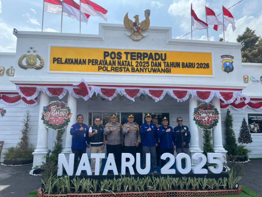 Selanjutnya, rombongan melanjutkan kegiatan dengan meninjau kelangsungan operasional di Pos Terpadu Pelayanan Natal 2025 dan Tahun Baru 2026 Polresta Banyuwangi. Kegiatan ini turut didampingi oleh Kombes Pol. Rama Samtama Putra,S.I.K.,M.Si.,M.H. selaku Kapolresta Polresta Banyuwangi, bersama para pejabat Polda dan jajaran.