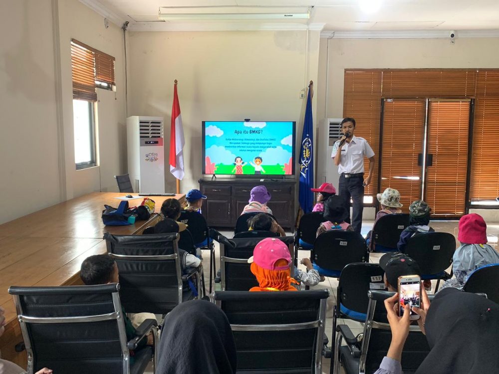 Kegiatan diawali dengan sesi pemaparan materi mengenai Badan Meteorologi, Klimatologi, dan Geofisika (BMKG), meliputi pengenalan dasar tentang cuaca dan iklim yang dikemas secara menarik melalui penjelasan interaktif dan pemutaran video edukasi. Materi disampaikan oleh Agung Dwi Nugroho, S.Tr. (PMG Muda) dengan pendekatan yang komunikatif sehingga mudah dipahami oleh anak-anak.